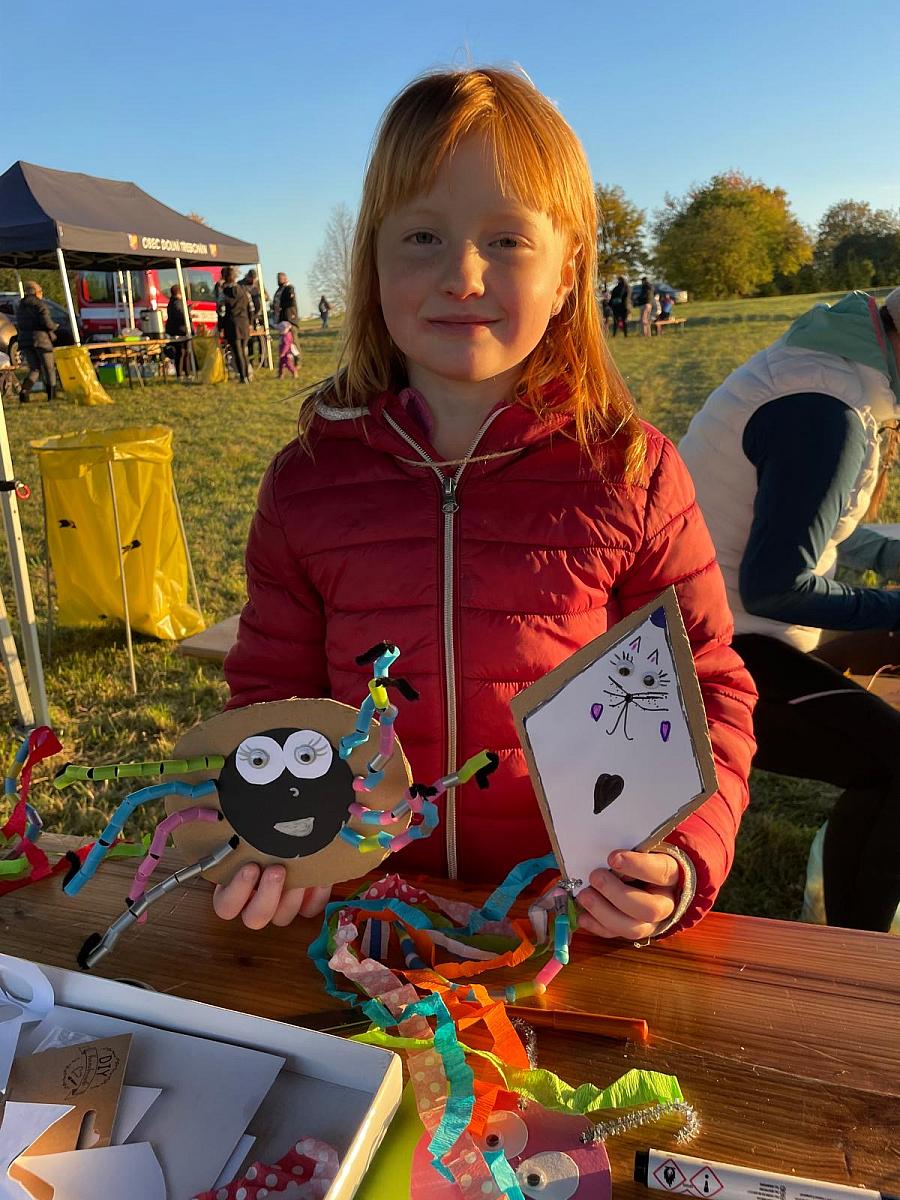 V sobotu 18. října se na kopci u “Chromků” pro děti uskutečnila Drakiáda. Do soutěže o nejhezčího draka se přihlásilo 54 dětí. Na vítěze čekaly bohaté odměny a ostatní děti byly také odměněny za účast . U Jiřinky si děti pohrály s obludou a mohly si vyrobit pavouky a další podzimní příšerky. Hasiči připravili oheň, tak nechybělo opékání buřtů a pečení brambor. Měli jsme radost, že chladné počasí děti neodradilo a přišly s námi strávit podzimní Drakiádu. Hasičům děkuji za perfektní přípravu.